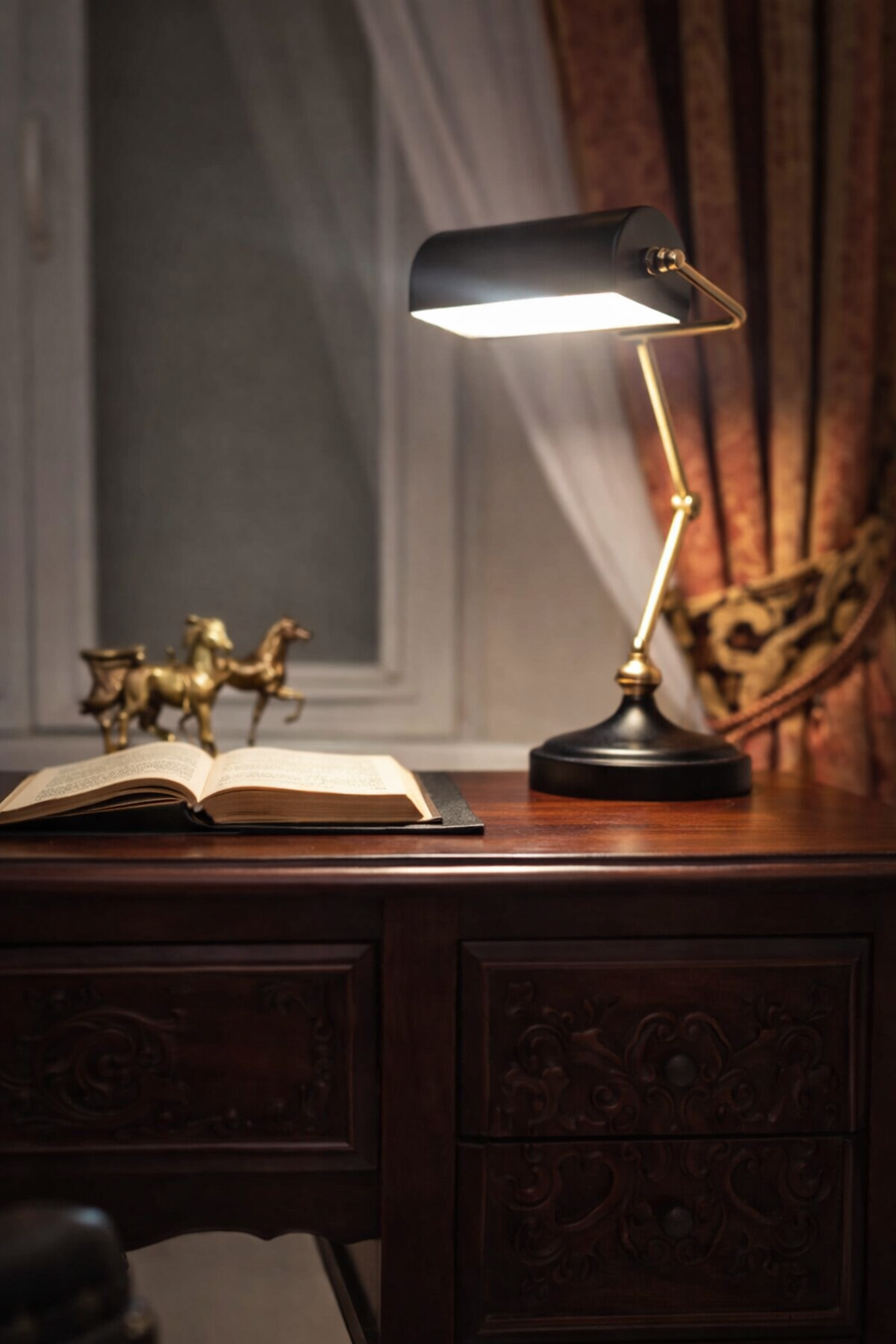A lamp creating a soft evening light.